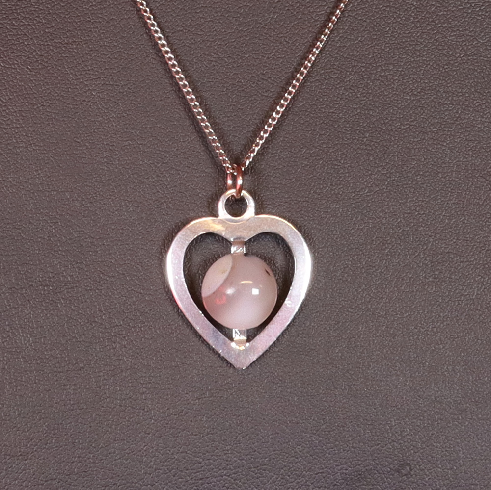 Todella kaunis ja hurmaava sydänriipus todennäköisesti 90-luvulta. Riipus on ostettu valikoimaan vanhan korukaupan jäämistöstä, joten se on täysin käyttämätön. Valmistettu hopeanvärisestä korumetallista. Riipuksessa sydämenmuotoisen raamin sisällä marmoripintainen harmaan / laventelinsävyinen kivi. Koska keskusta on aitoa kiveä, sävy vaihtelee hieman. Huom! Tuote sisältää vain riipuksen, ei kaulaketjua.