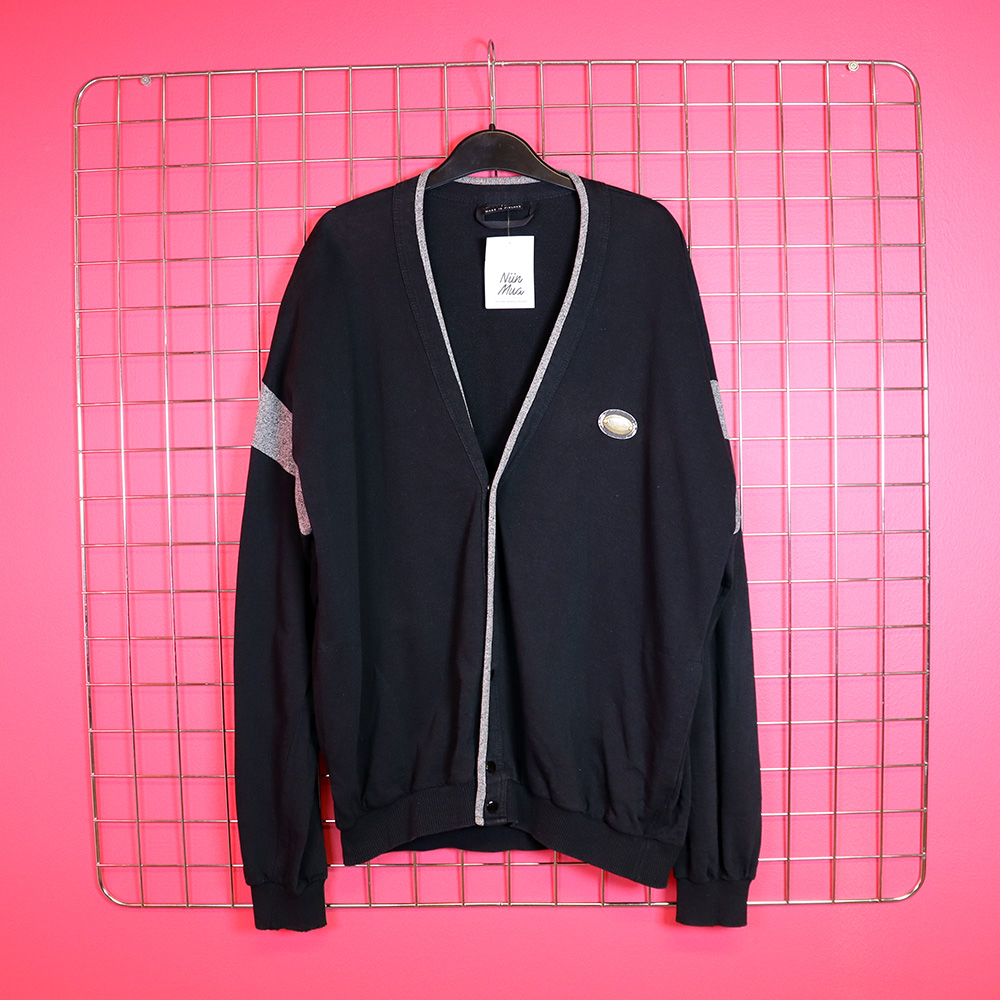 Kotimaisen Finnwear Oy:n Suomessa 80-luvulla valmistaja järkyttävän upea unisex-trikootakki. Valmistettu pehmeästä puuvillatrikoosta. Pääsäävynä musta, yksityiskohdat meleerattua harmaata. Helmassa ja hihansuissa joustinneulosta. V-pääntie, nepparikiinnitys ja sivutaskut. Rinnan merkin tekonahka kulunut, muutoin todella hyväkuntoinen ja monikäyttöinen unisex-trikootakki!