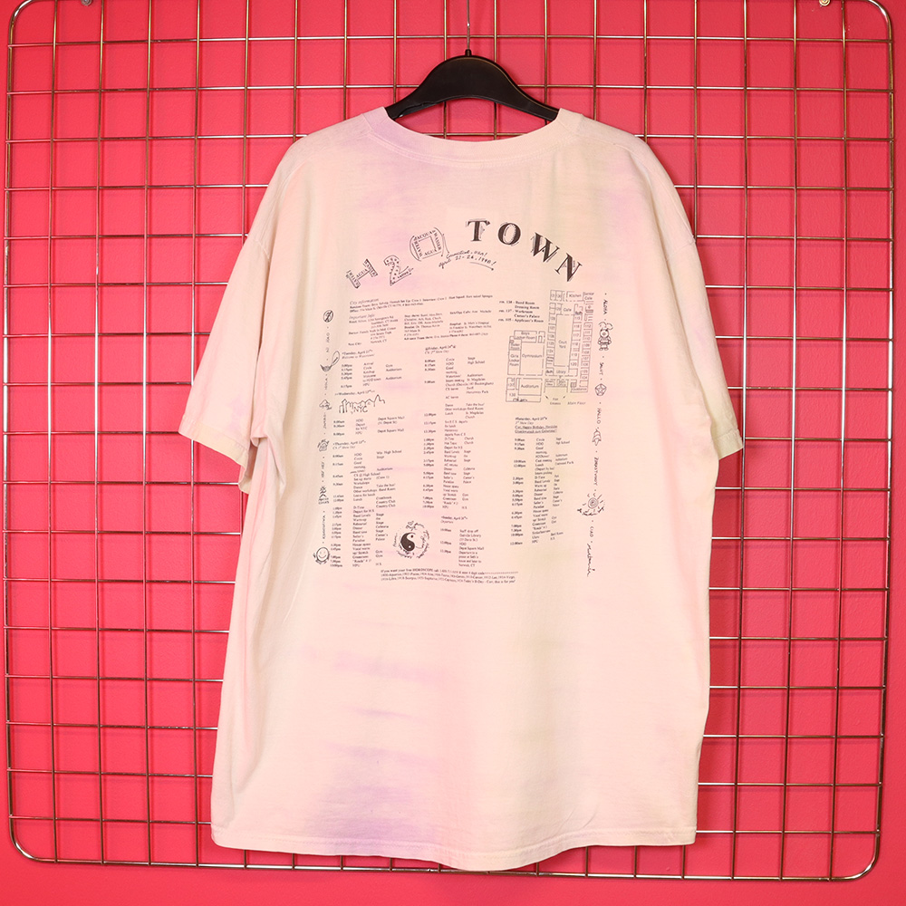 Fruit of The Loom -merkkinen huikea batiikkivärjätty T-paita vuodelta 1998. Itse paita valmistettu El Salvadorissa. Selässä H20 Town -tapahtumaprintti. Todennäköisesti batiikkivärjätty vaaleilla sävyillä jälkikäteen. Hyväkuntoinen ja todella persoonallinen Fruit of The Loom T-paita vuodelta 1998!