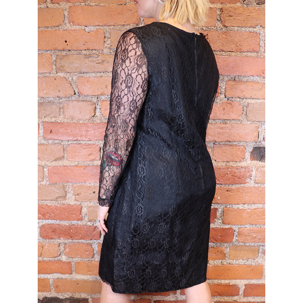 Kaunis ja hurmaava, Kaunotar -tuotemerkin Turussa valmistama pitsimekko 60-luvulta. Koska mekko on Suomessa valmistettu, on se todennäköisesti vastuullisesti valmistettu. Muotokielen ja materiaalin perusteella valmistettu 1960-luvulla. Valmistettu mustasta kukkapitsistä, vuorattu hihaa lukuun ottamatta mustalla polyesterilla. Polvipituinen ja pitkähihainen kotelomekkomalli, jossa pieni, pyöreä pääntie. Edessä vyötärökorkeudella hurmaava ruusuke. Muotoleikkaukset etukappaleella, muotolaskokset selässä. Kiinnitys niskasta pitkällä muovivetoketjulla. Todella hyväkuntoinen ja kaunis kotimainen kotelomekko 60-luvulta!