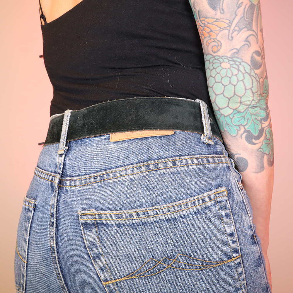 Järkyttävän upea leveä mokkavyö 60-luvulta. Ulkopinta mustaa mokkanahkaa, sisäpinta ruskeaa tekonahkaa. Näyttävä, taottu kultapronssinen solki. Ikäisekseen erittäin hyväkuntoinen mokkavyö.