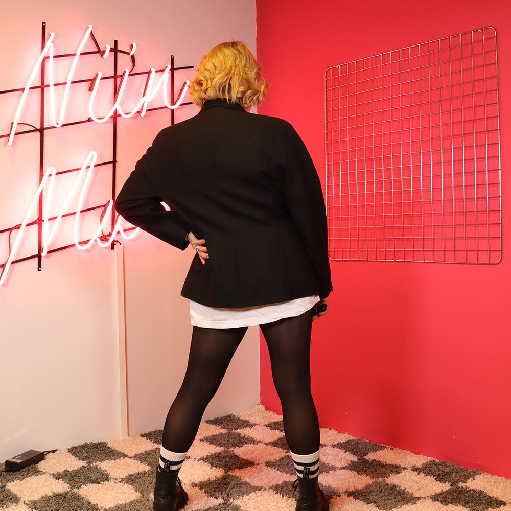 Kokomerkintä 42, jolle tyköistuva – sopii myös relaxed fit -käyttöön koolle 38/40. Kuvan malli on 158 cm ja käyttää yleensä kokoa 36/38 – mallille rento. Tarkemmat kokotiedot alla.
