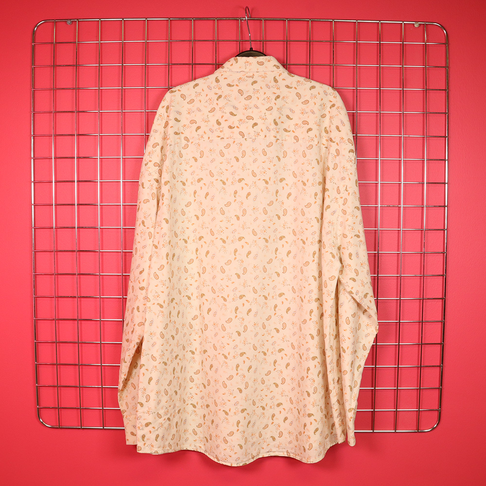 Match-merkkinen järkyttävän upea vintage-flanellipaita 90-luvulta. Valmistettu Malesiassa. Valmistettu kevyestä flanellikankaasta, jossa vaalealla pohjalla ajaton paisley-kuosi, jossa upea ruskea-mustasävyinen kuosi. Rento kauluspaitamalli, jossa pyöristetty helma. Nappikiinnitteinen rintatasku. Rintataskun nappi vaihdettu ja sivusauma korjattu 2 cm matkalta, muutoin erittäin hyväkuntoinen ja raikas vintage-flanellipaita unisex-käyttöön!