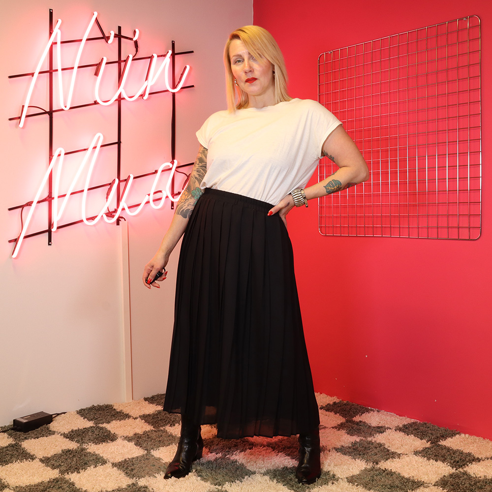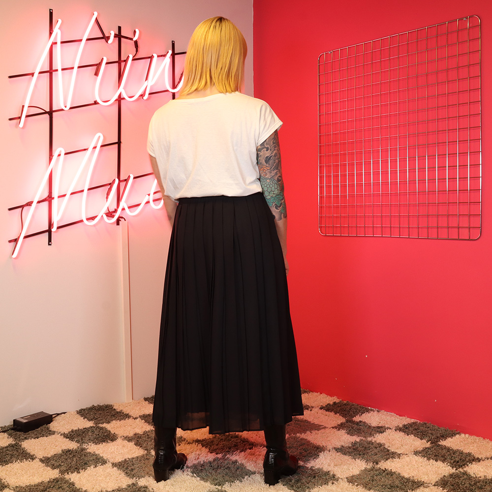 Merlyn-merkkinen, Suomessa 80/90-luvulla valmistettu kaunis musta hame koossa 42. Valmistettu kauniisti laskeutuvasta mustasta materiaalista, joka kuultaa hieman läpi. Kokonaan vuoritettu. Vyötärökaitale kokonaan kuminauhoitettu. Erittäin hyväkuntoinen ja ajaton musta hame arkeen ja juhlaan!