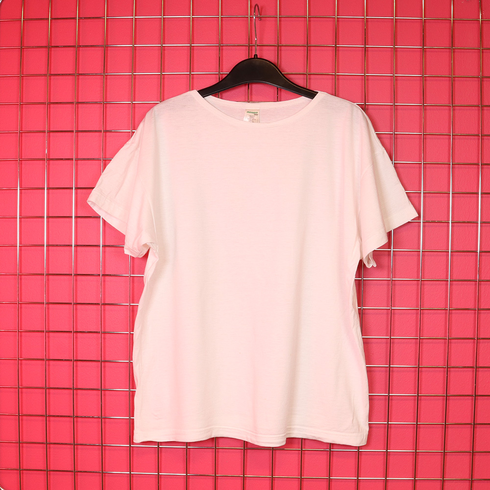 Nanso Oy:n Suomessa 90-luvulla valmistama ajaton valkoinen T-paita. Valmistettu puuvillatrikoosta. Lyhyehkö malli, laakea pääntie. Helmassa kaksi pientä ruostetahraa (huomioitu hinnassa), muutoin hyväkuntoinen, ajaton ja laadukas valkoinen T-paita!