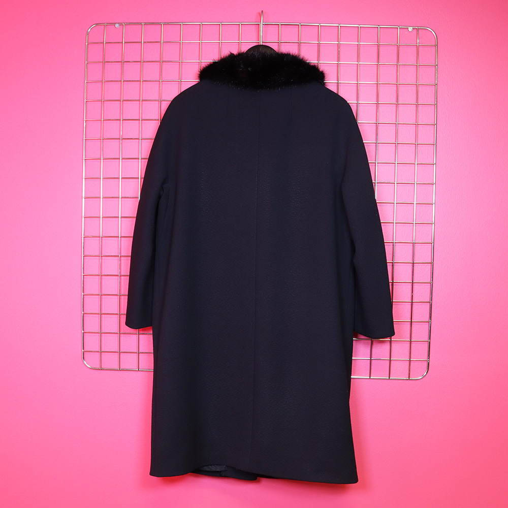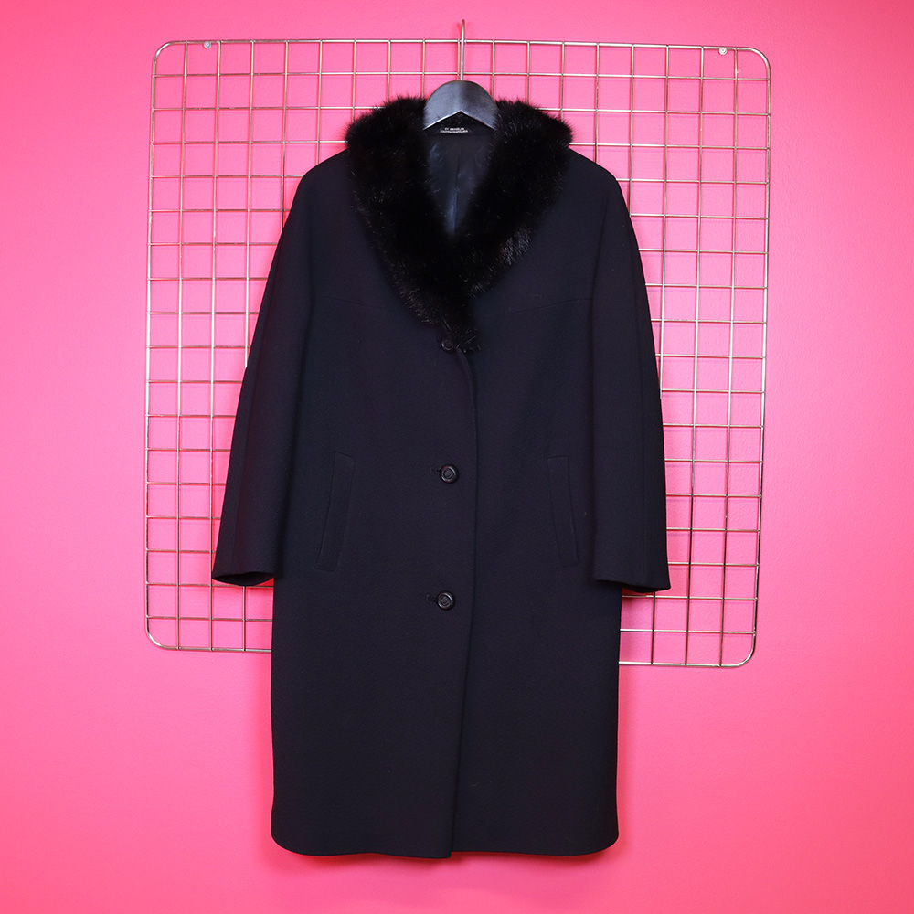 Oy Kokkolan Kauppakomppanian 60-luvulla valmistama upea musta villakangastakki. Takin kangas valmistettu Italiassa. Upea aikakautensa, mutta samalla ajaton, kellomainen malli. Kauluskäänne tekoturkista. Yksirivinen napitus. Sivutaskut. Vuoren välissä villavatiini. Pientä luonnollista kulumaa, mutta yleisilmeeltään todella siisti ja käyttökelpoinen musta villakangastakki myös juhlakäyttöön!