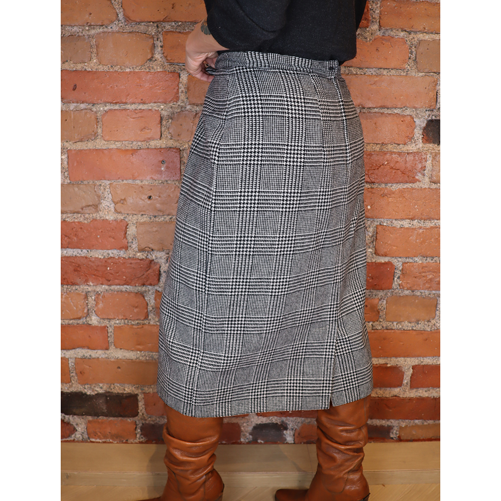Pusakka Oy:n Tampereella 80-luvulla valmistama hurmaava ruutuhame. Valmistettu helppohoitoisesta kankaasta, jossa valkoisella pohjalla musta kukonaskelkuosi. Ajaton hamemalli, jossa vyötäröllä kapea vyötärökaitale. Helman keskitakasaumassa halkio. Kiinnitys keskitakasaumasta vetoketjulla. Vyötärökaitaleella nappikiinnitys. Hyvin huomaamatonta nukkaa pinnassa, yleisilmeeltään siisti ja hyväkuntoinen, monikäyttöinen ruutuhame ympärivuotiseen käyttöön!