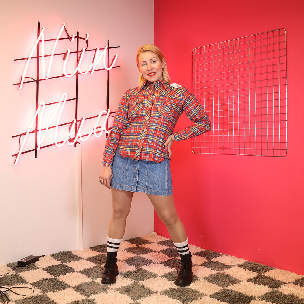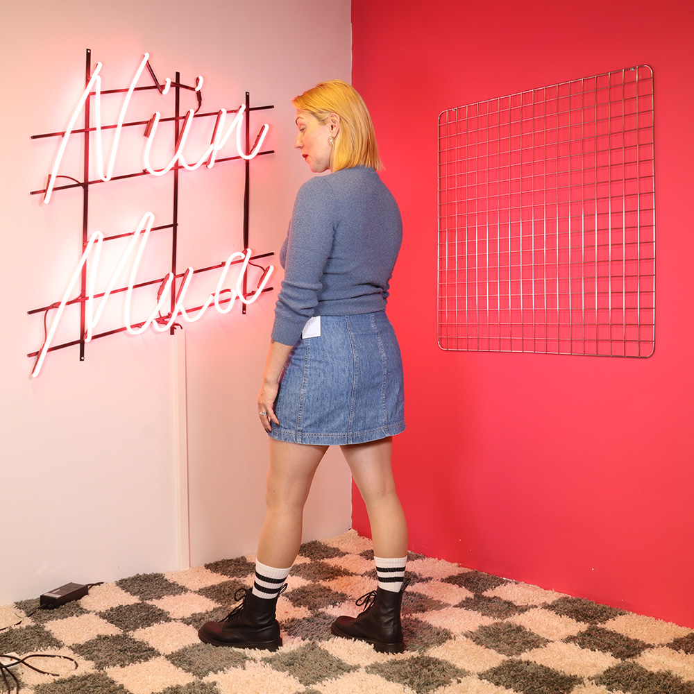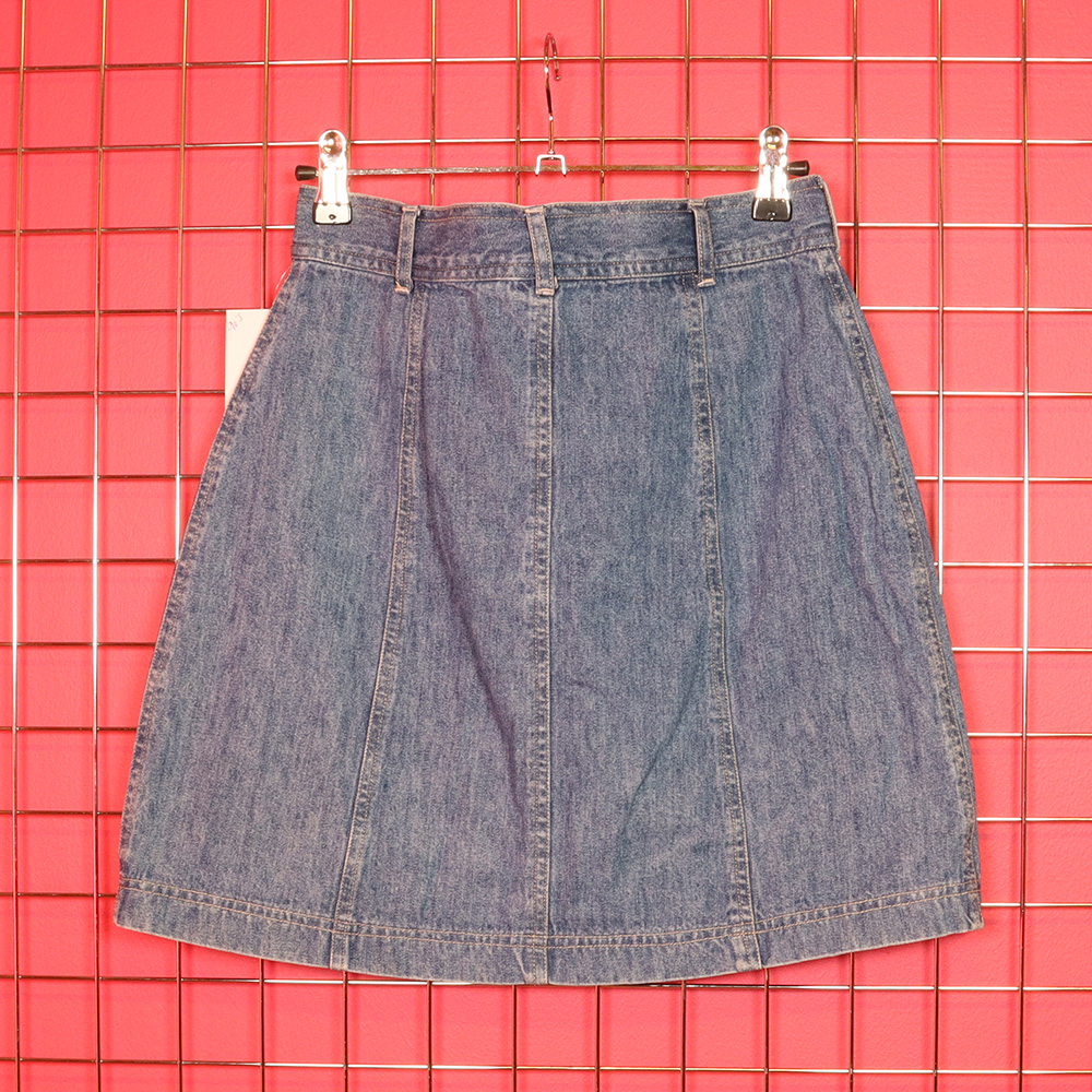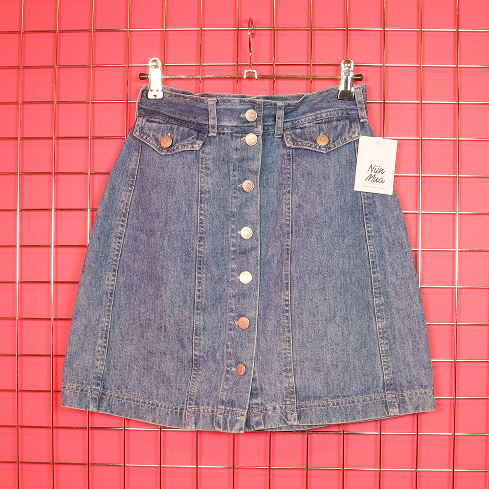 KappAhlin Sinclair-tuotemerkille valmistama ajaton, lyhyt farkkuhame 90-luvulta. Ei valmistusmatietoja. Valmistettu keskisinisestä denimistä. A-linjainen malli, jossa keskiedussa metallinappikiinnitys. Vyötärökaitaleella vyölenkit. Etukappaleella pienet, läpälliset taskut. Erittäin hyväkuntoinen, lyhyt farkkuhame!