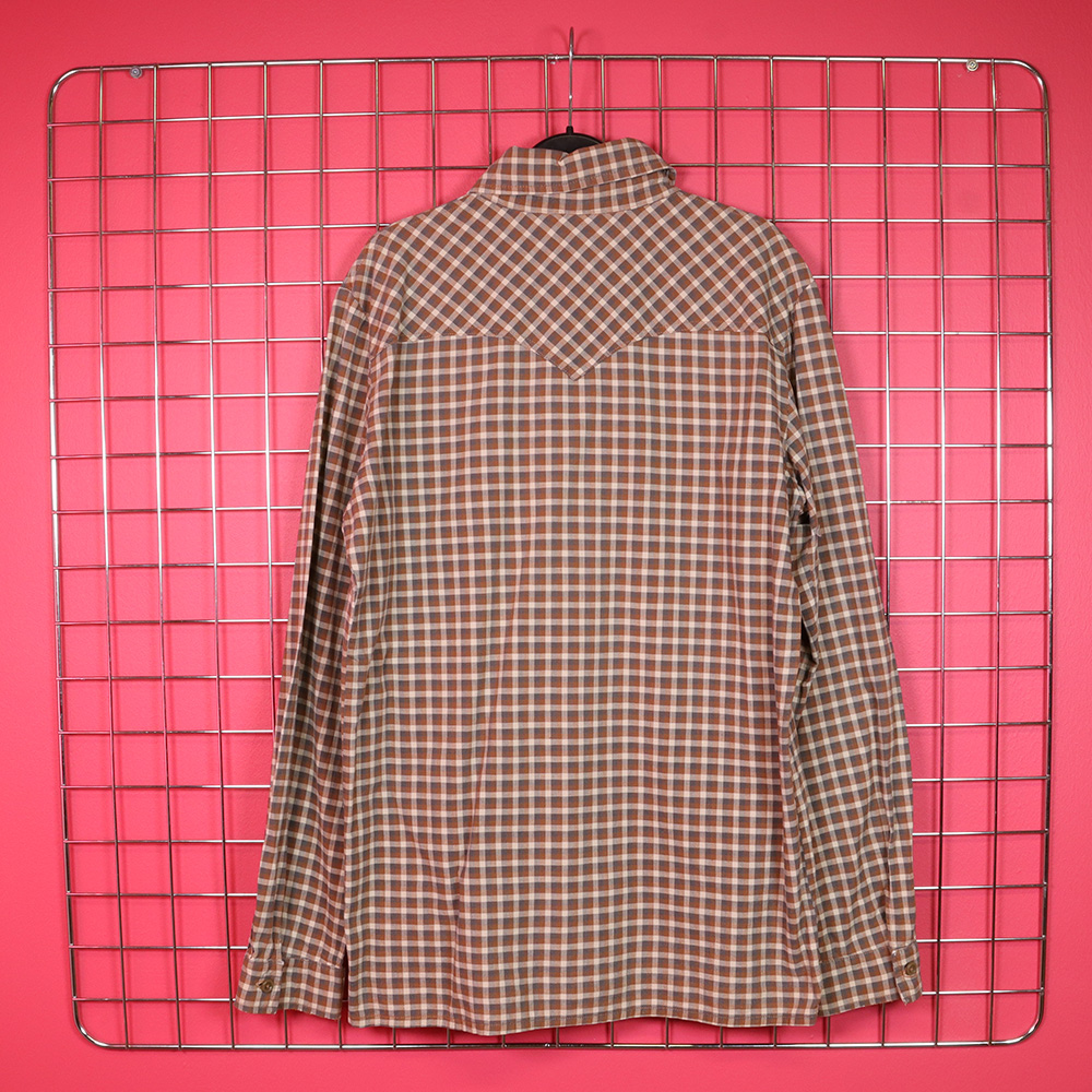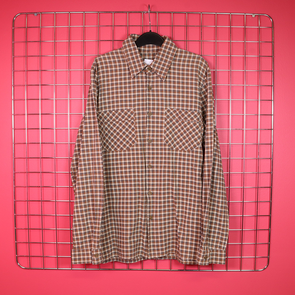 Taidokkaasti kotikoneella valmistettu unisex-paita todennäköisesti 70-luvulta. Koska paita on itse valmistettu, on se täysin uniikki. Valmistettu pehmeästä puuvillakankaasta, jossa ruskeasävyinen ruutukuosi. Kaksi rintataskut. Hyväkuntoinen, kaunis ja ajaton unisex-paita ympärivuotiseen käyttöön!