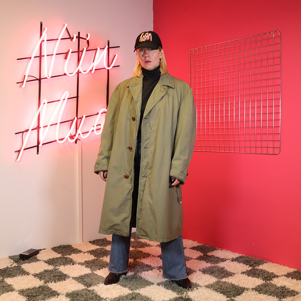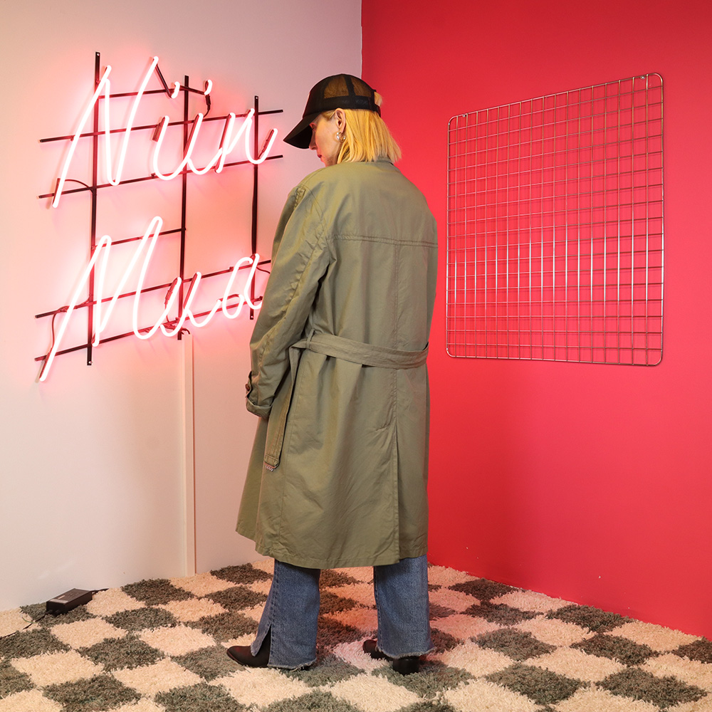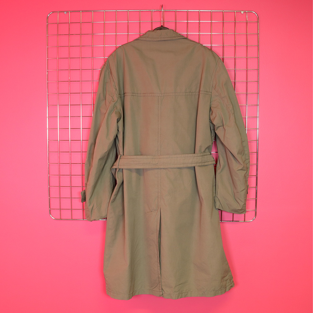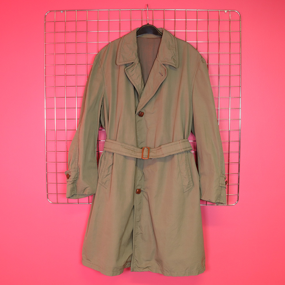 Wellborn-merkkkinen 60-luvulla todennäköisesti Englannissa valmistettu upea, miesten vintage-takki. Valmistettu khakinvihreästä, jämäkästä kankaasta. Kokonaan vuoritettu kevyellä villakankaalla; takki on lämmin, mutta kevyt. Herrainkaulus ja sivutaskut. Nahkasolkinen vyö ja vyölenkit. Kiinnitys kolmella nahkanapilla. Napit hieman kuluneet, muutoin hyväkuntoinen ja laadukas miesten vintage-takki myös unisex-käyttöön!